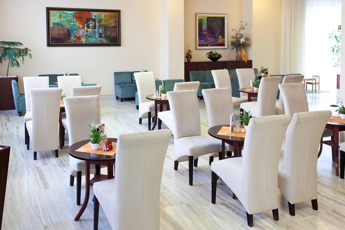 Hosté si mohou vychutnat osvěžující nápoj na sluneční terase ve Sky baru s krásným výhledem na řeku Váh, park a město Piešťany. Šálek horké kávy a čerstvý dezert, který pro hosty připravuje hotelová cukrárna, je připraven v příjemném prostředí hotelové kavárny. Jeho kapacita je 60 míst a v letních měsících je propojen s letní terasou.